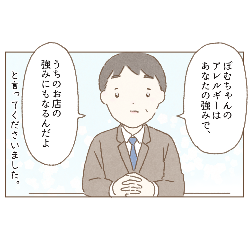 『アレルギーを強みに』すごくいい言葉ですね。アレルギーで苦労したからこそ、アレルギーの人の気持ちに寄り添える。それを『強み』として歓迎してくれる、素敵な職場に出会えて本当によかった!!辛いこともたくさんあるでしょうが、ぽむさんの夢が叶うことを心から祈っています!