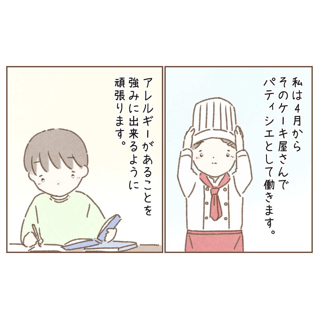 今回のお話で『アレルギーを自分の強みに』と聞いて、勇気が湧きました。ありがとうございます!素敵なパティシエールになって、いつかお店が出せるといいですね!買いに行きたいです!応援してます!