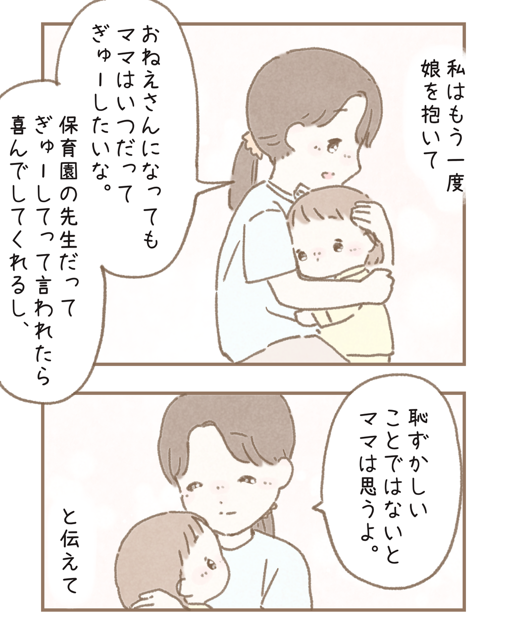 わたしも二児の母として、上の子をたくさんぎゅーとしたいです。お姉ちゃんお兄ちゃん関係ない、2人とも同じくらい大事で大切よと伝えていきたいです♡