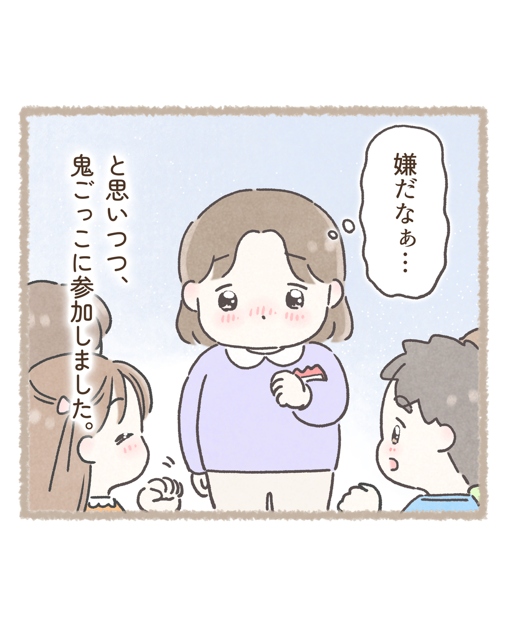 #358『想い出の鬼ごっこ』 第1話 2024/04/17 【みんなのハッピーエピソード#358】『想い出の鬼ごっこ』第1話🔻前回の投稿🔻 こちらはむぅさんから頂いたお話をもとにしたマンガです🔻本編🔻...自分の体形や好きなことをこんな風に否定されてしまうと保育園(もしくは幼稚園)が苦しい居場所になってしまいますよね…( ; ; )ーーーーーーーーーー🔻次のお話🔻 🔻ハッピーエピソード募集中です♡🔻エピソードを送って下さった皆様誠にありがとうございます🙇♀️できる限りたくさん描かせて頂きます🙇♀️♡🔻ご登録お待ちしております(*´꒳`*)♡🔻🔻これまでのハッピーエピソード🔻 🔻LINE公式アカウント🔻 「保育園」カテゴリの最新記事 < 前の記事次の記事 > コメント コメント一覧 (2) 1. ぷ 2024/04/18 09:13 もう先生が最低すぎる😿 0 nishiyamatomoko がしました 2. これは 2024/04/24 11:15 先生、最低や💥 私は絵が書くのが苦手で画用紙いつも真っ白でした。給食の時に睨まれた、先生が仕方なく書いてくれたお父さんの似顔絵・・・悲しいかったけど今はその先生に恨みを晴らしたい❗️なんちゃって😭50過ぎたおばさんの戯言でした🙇 0 nishiyamatomoko がしました コメントフォーム 名前 コメント 記事の評価 リセット リセット 顔 星 情報を記憶 コメントを投稿する 【コメント投稿時の注意事項】投稿いただいたコメントはライブドアスタッフの確認後に公開されます。夜間帯にいただいたコメントは翌日の公開となるケースもございますので、ご了承くださいませ。