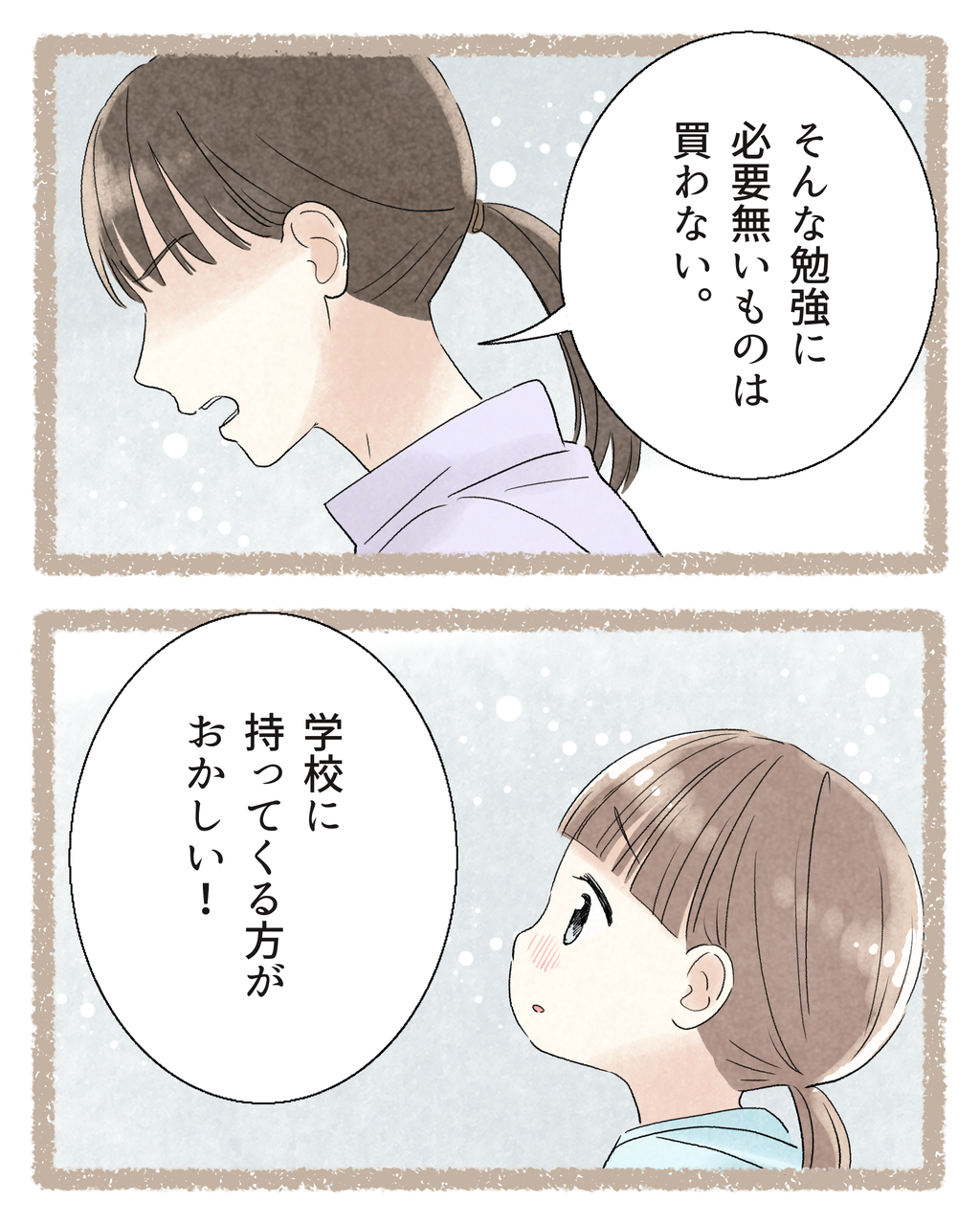 #393『あの頃欲しかったもの』 第1話 2025/10/06 【みんなのハッピーエピソード#393】『あの頃欲しかったもの』第1話🔻前回の投稿🔻6l:[][:]こちらはひよりさんから頂いたお話をもとにしたマンガです🔻本編🔻...ひよりさんのお話です☺️(全7話予定)続きます…✏️ーーーーーーーーーー🔻次のお話🔻 🔻ハッピーエピソード募集中です♡🔻エピソードを送って下さった皆様誠にありがとうございます🙇♀️できる限りたくさん描かせて頂きます🙇♀️♡🔻ご登録お待ちしております(*´꒳`*)♡🔻🔻これまでのハッピーエピソード🔻 🔻LINE公式アカウント🔻 「夫」カテゴリの最新記事 < 前の記事次の記事 > コメント コメント一覧 (1) 1. 切ない 2025/10/06 20:12 けど、お母さんの気持ちもわかるから辛いなぁ 0 nishiyamatomoko がしました コメントフォーム 名前 コメント 記事の評価 リセット リセット 顔 星 情報を記憶 コメントを投稿する 【コメント投稿時の注意事項】投稿いただいたコメントはライブドアスタッフの確認後に公開されます。夜間帯にいただいたコメントは翌日の公開となるケースもございますので、ご了承くださいませ。