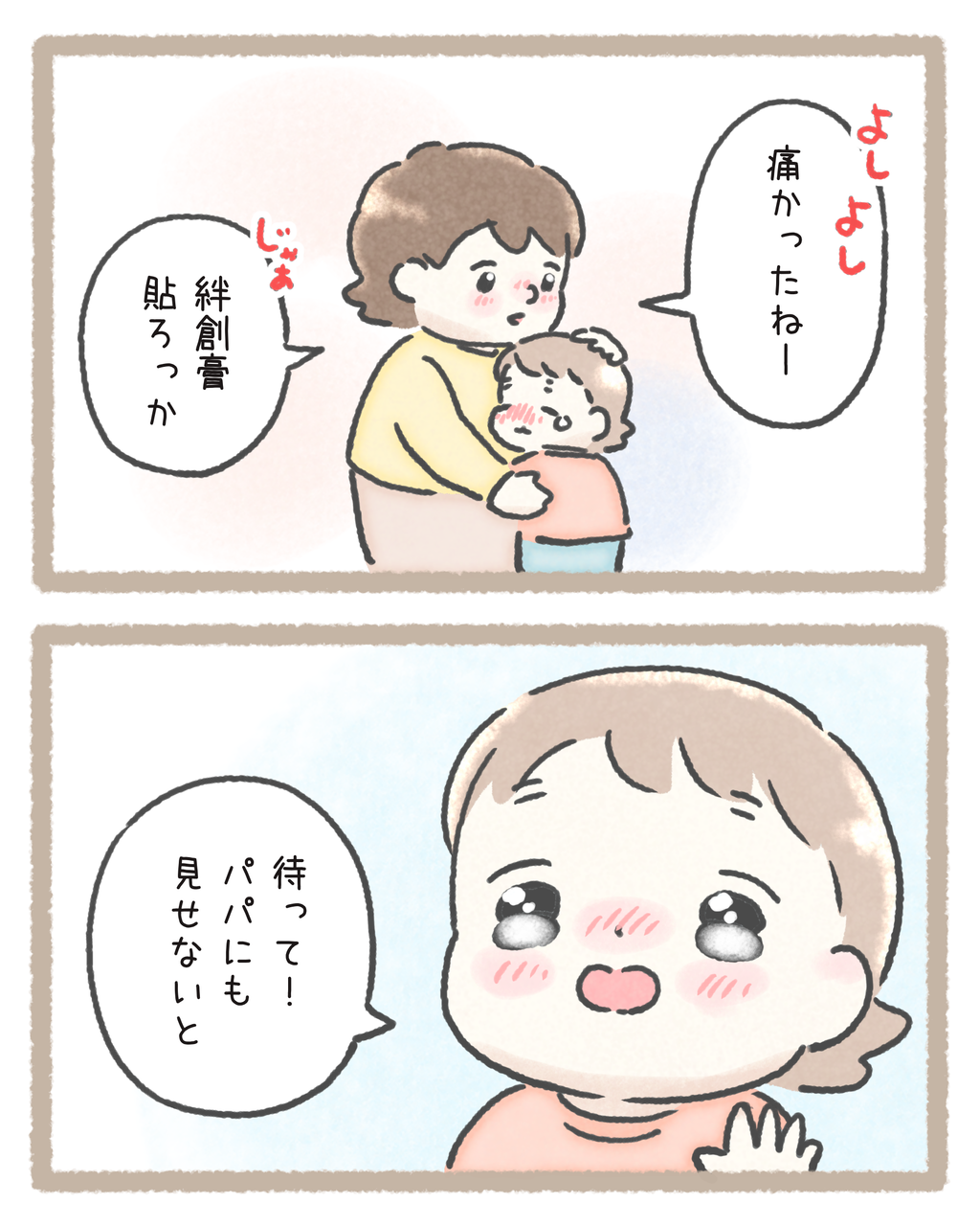 『よしよし』 2025/11/14 『よしよし』🔻前回の投稿🔻 🔻本編🔻...ちょっとでもケガをするとすぐにスンスン( ; ; )しながら報告にくるハナちゃんなるべく「よしよし」して貰おうと必ず母にも父にも報告するところがかわいいです笑🤭ーーーーーーーーーー🔻次のお話🔻 🔻ハッピーエピソード募集中です♡🔻エピソードを送って下さった皆様誠にありがとうございます🙇♀️できる限りたくさん描かせて頂きます🙇♀️♡🔻ご登録お待ちしております(*´꒳`*)♡🔻🔻これまでのハッピーエピソード🔻 🔻LINE公式アカウント🔻 「子育て絵日記」カテゴリの最新記事 < 前の記事次の記事 > コメント コメント一覧 (1) 1. まぁむ 2025/11/15 09:41 子供の皮膚は痛みを感じるセンサーが 大人よりも密集しているから 大人より10倍痛みが強いとか言いますもんね。注射で泣いちゃうのは経験とかよりも身体の作りにある部分が大きいらしい。 パパが治療してくれた安心感と、カボチャシチューで元気取り戻せて良かったです😊 0 nishiyamatomoko がしました コメントフォーム 名前 コメント 記事の評価 リセット リセット 顔 星 情報を記憶 コメントを投稿する 【コメント投稿時の注意事項】投稿いただいたコメントはライブドアスタッフの確認後に公開されます。夜間帯にいただいたコメントは翌日の公開となるケースもございますので、ご了承くださいませ。