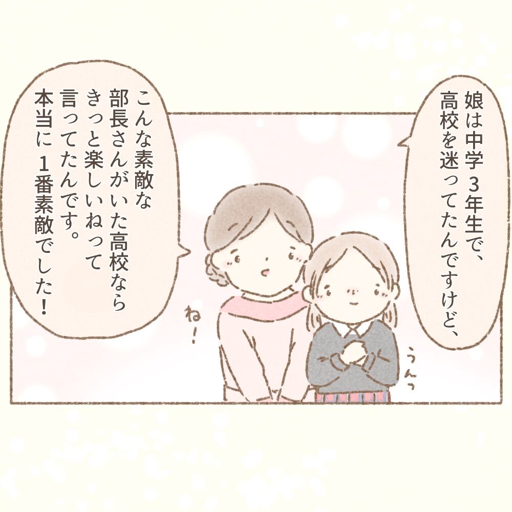 逆に、入り込み過ぎてしまって、この中3の子が入った時には、つるんで人を貶めるようなこの部員達しか残ってない部に入部してしまうのか…と不安になってしまいました。