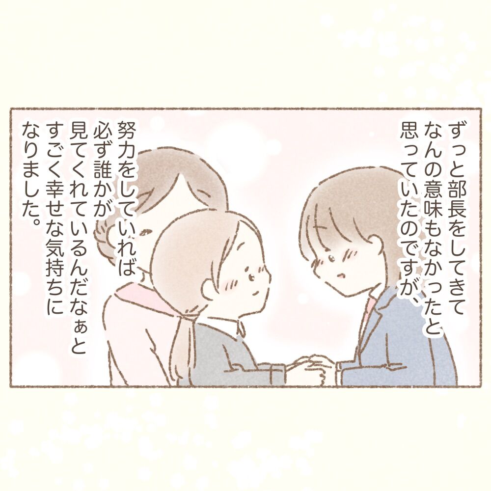 ハッピーエピソード#98『報われた瞬間』後編 2020/12/09 🌸前編はこちらです↓ ハッピーエピソード#98『報われた瞬間』後編 こちらは、みれなさんから頂いたエピソードです。高校生で周りの風当たりにも負けず部長を務め上げ、主役をするために頑張ってきたのに悪役になってしまい部活なんか辞める!となってもいい所なのに、それでも前向きに頑張って、見事に主役を食う悪役を演じて親子の言葉に頑張ってよかったと意味を見出す…みれなさん、きっと社会に出てもご活躍されることでしょう…エピソードはもちろんみれなさんに感動致しました🙇♀️💕💕嫌味な部員さんはみれなさんが優秀で羨ましかったのでしょうね☺️ みれなさん、素敵なエピソードありがとうございました🙇♀️ーーーーーーーーーーーーーコメントありがとうございます(*^^*)有り難く読ませて頂いてます🙇♀️♡ーーーーーーーーーーーーー誤字、脱字がございましたらコメントで教えて頂けますと大変助かります🙇♀️♡ーーーーーーーーーーーーー↓登録者様は2070名様💕↓ありがとうございます🙇♀️💕励みになります☺️❣️↓ハッピーエピソード募集中です☺️💕↓ 「ハッピーエピソード」カテゴリの最新記事 < 前の記事次の記事 > コメント コメント一覧 (9) 1. しおな 2020/12/09 19:31 来年部長になる事が嫌で、今色々悩んでいます。そんな時、このお話を読めて本当に良かったです!私もこの方の様に、前向きに頑張ろうと思いました! 0 nishiyamatomoko がしました 2. みにー 2020/12/09 19:50 スカッとジャパンみたいなエピソード! 感動しました! 0 nishiyamatomoko がしました 3. レインボー 2020/12/09 19:59 素晴らしいエピソードに励まされました。 人生ってそうかもしれませんね。 理不尽さに不満を言い、悔しがって終わるか。 その状況でも最善を尽くして行くか。 いつも選択されているのかもしれませんね。 この方はこれからも絶対良い方向に向かいますね。 0 nishiyamatomoko がしました 4. frogkingdam 2020/12/09 19:59 すごく心が洗われるお話でした。 逆に、入り込み過ぎてしまって、この中3の子が入った時には、つるんで人を貶めるようなこの部員達しか残ってない部に入部してしまうのか…と不安になってしまいました。 演劇部に入るって言った訳じゃ無いのにね😅入り込み過ぎました。 0 nishiyamatomoko がしました 5. みおたん 2020/12/09 20:12 主役だから目立っていたのではなく、脇役がいるから目立つのであって、勘違いされたお仲間に会ってしまったみたいですね。 地道にコツコツ頑張っていたからこその輝きだったのだと思います。 0 nishiyamatomoko がしました 6. 乱 2020/12/09 21:36 私も同じ状況だったのですごく共感しました!久々に懐かしい気持ちとあの時のあつい気持ちを思い出せました! 何事にも一生懸命に諦めない心を思い出しました、ありがとうございます♪ 0 nishiyamatomoko がしました 7. カイ 2020/12/09 22:29 地道に頑張っていれば、周りに認められるんですよね😄 主役の子は、自分だけ目立つことを考えていると思いますが、しゅやく脇役だって劇の仲間なんだと思って 0 nishiyamatomoko がしました 8. カイ 2020/12/09 22:35 地道に頑張っていると、認められると思っています。 主役の子は自分だけ目立つことを考えていると思いますが、劇は脇役がいてこそ、主役が引き立つと思います。 そのことを、主役だった子には分かってほしいと思いますね。 0 nishiyamatomoko がしました 9. ねこ 2020/12/10 11:20 素敵な話です。 つい部長さんの両脇に居た2人に対してザマミロと思ってしまいました笑 0 nishiyamatomoko がしました コメントフォーム 名前 コメント 記事の評価 リセット リセット 顔 星 情報を記憶 コメントを投稿する 【コメント投稿時の注意事項】投稿いただいたコメントはライブドアスタッフの確認後に公開されます。夜間帯にいただいたコメントは翌日の公開となるケースもございますので、ご了承くださいませ。