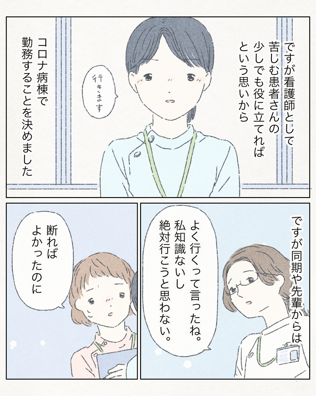 私もコロナ病棟で勤務する看護師です。