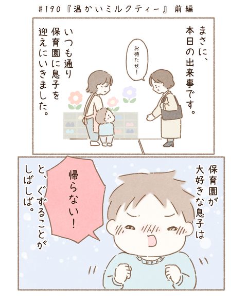 『温かいミルクティー』前編 2022/01/22 【みんなのハッピーエピソード#190】『温かいミルクティー』前編 こちらは、たっくんママさんから頂いたお話です🍀 道端で寝転がってイヤイヤされると辛いですよね…(;_;)後編はこちら↓ 🔻これまでのハッピーエピソード🔻 ↓ご登録お待ちしております(*´꒳`* ... 続きを読む
